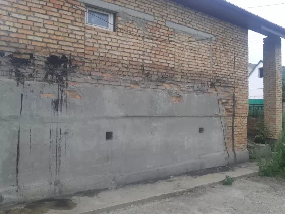 Фундамент-ленточный, материал стен-кирпич, перекрытие первого этажа - бетонные плиты.