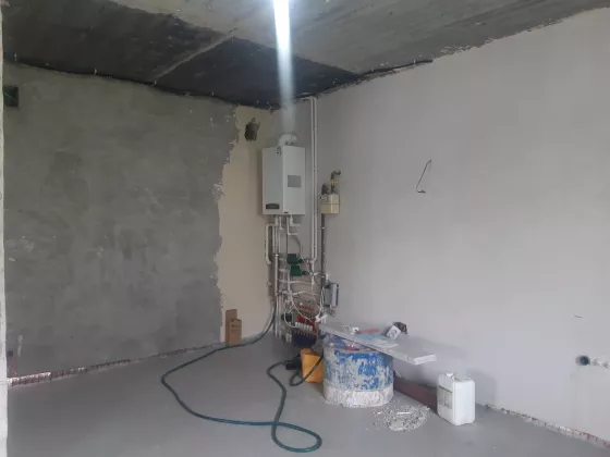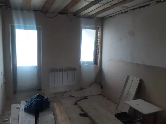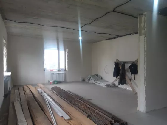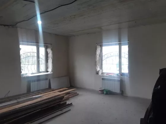 Отделка дома: стяжка пола, штукатурка стен, разводка электричества, установка радиаторов отопления, пластиковые окна, установлена винтовая металлическая лестница, вывод воды, канализации, установлен газовый котёл, система теплый пол, произведена теплоизоляция, установлены кованные решетки на окна.