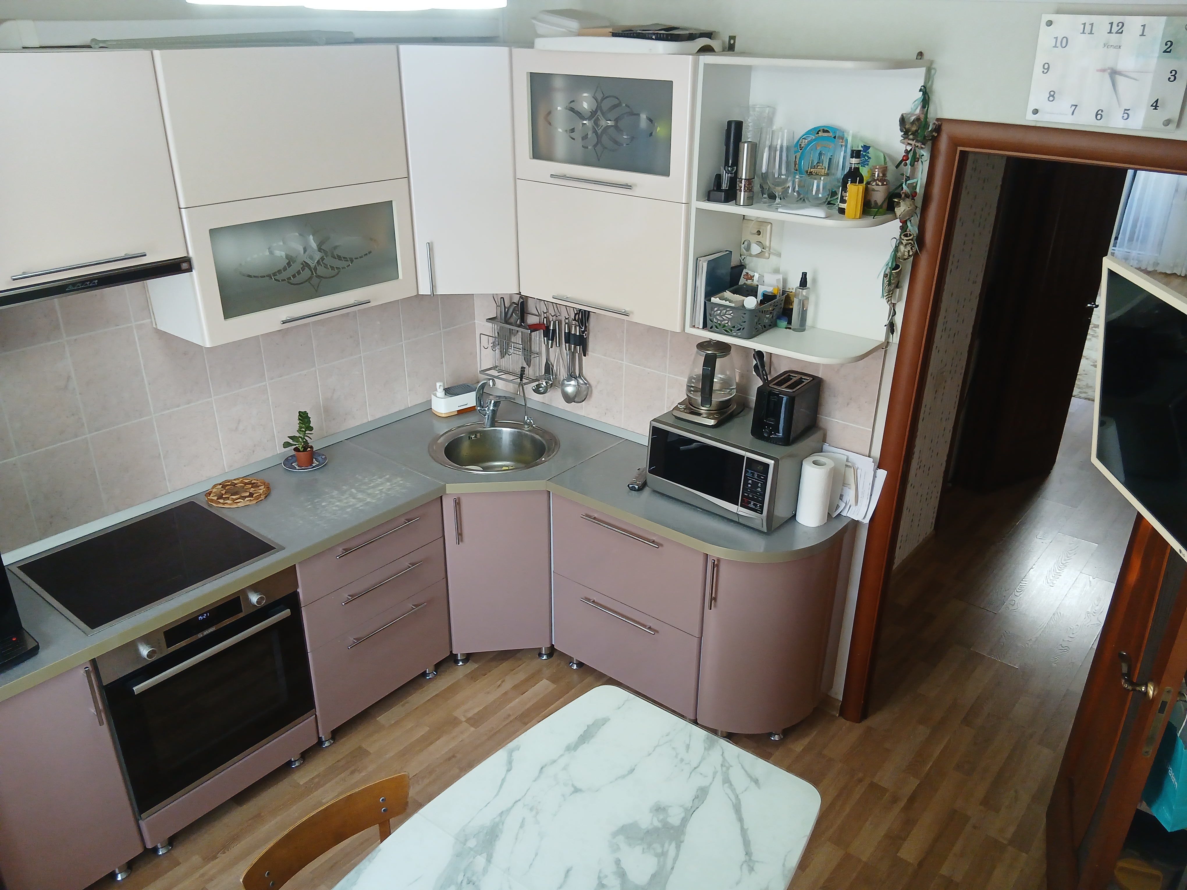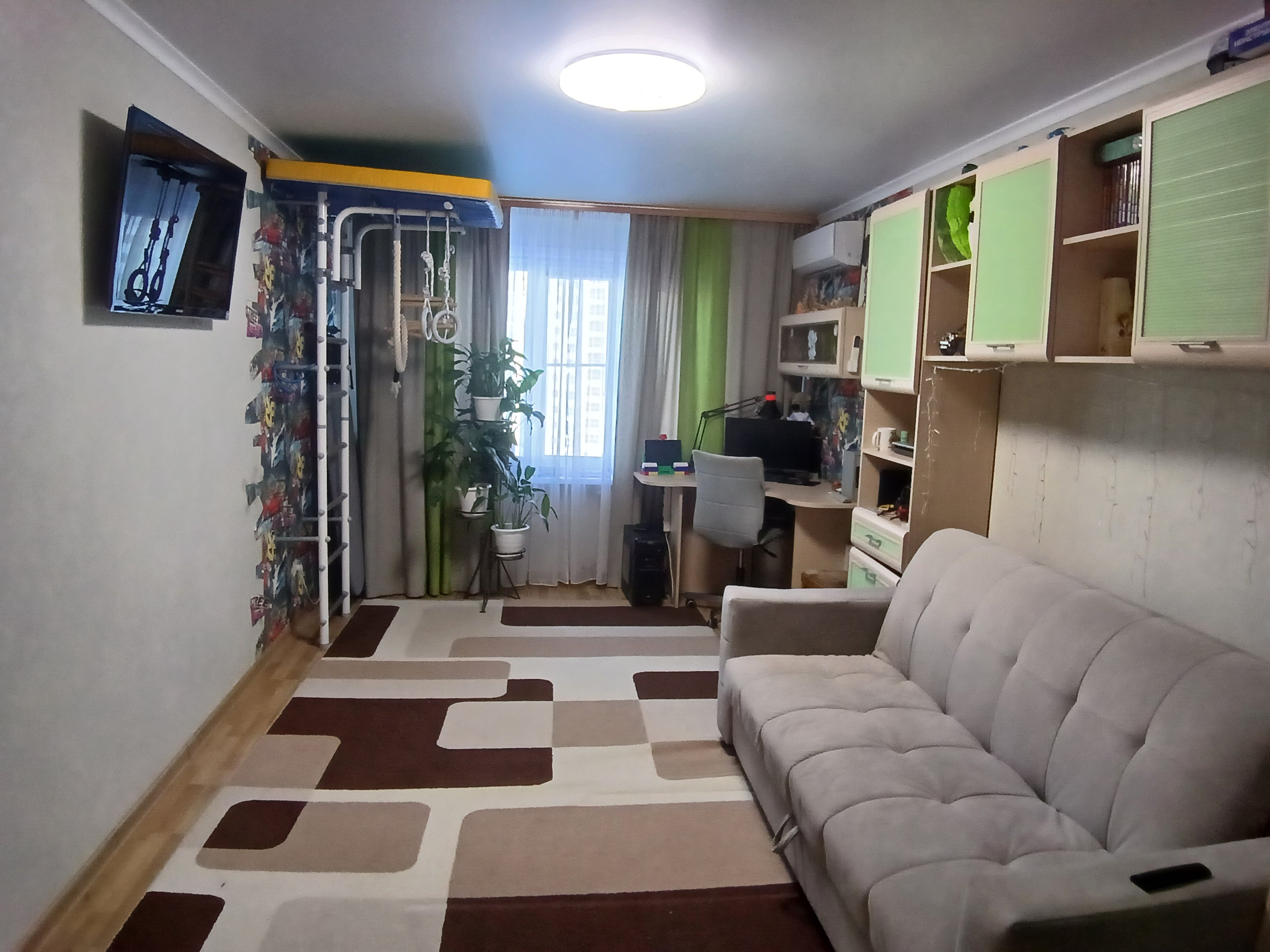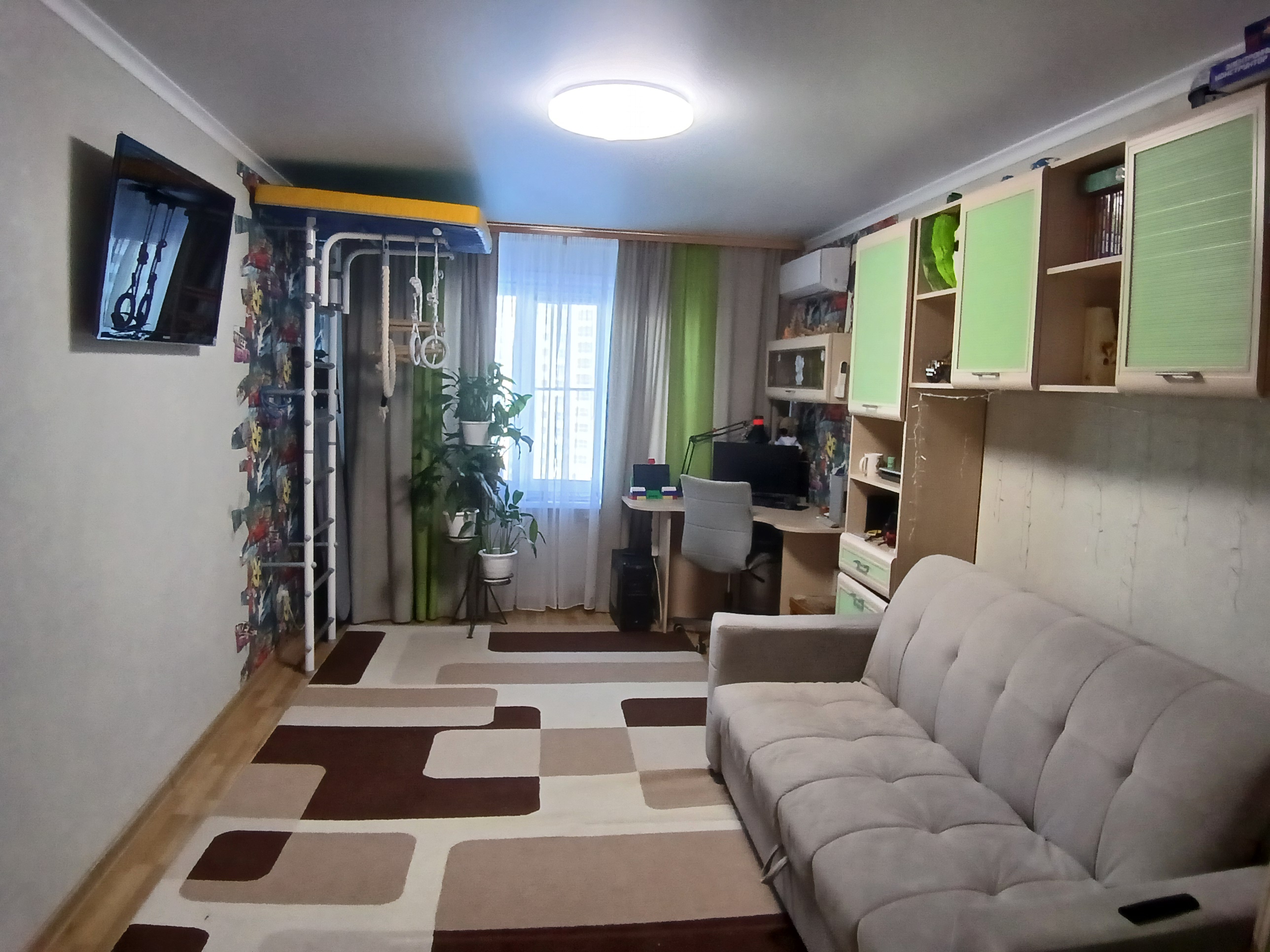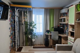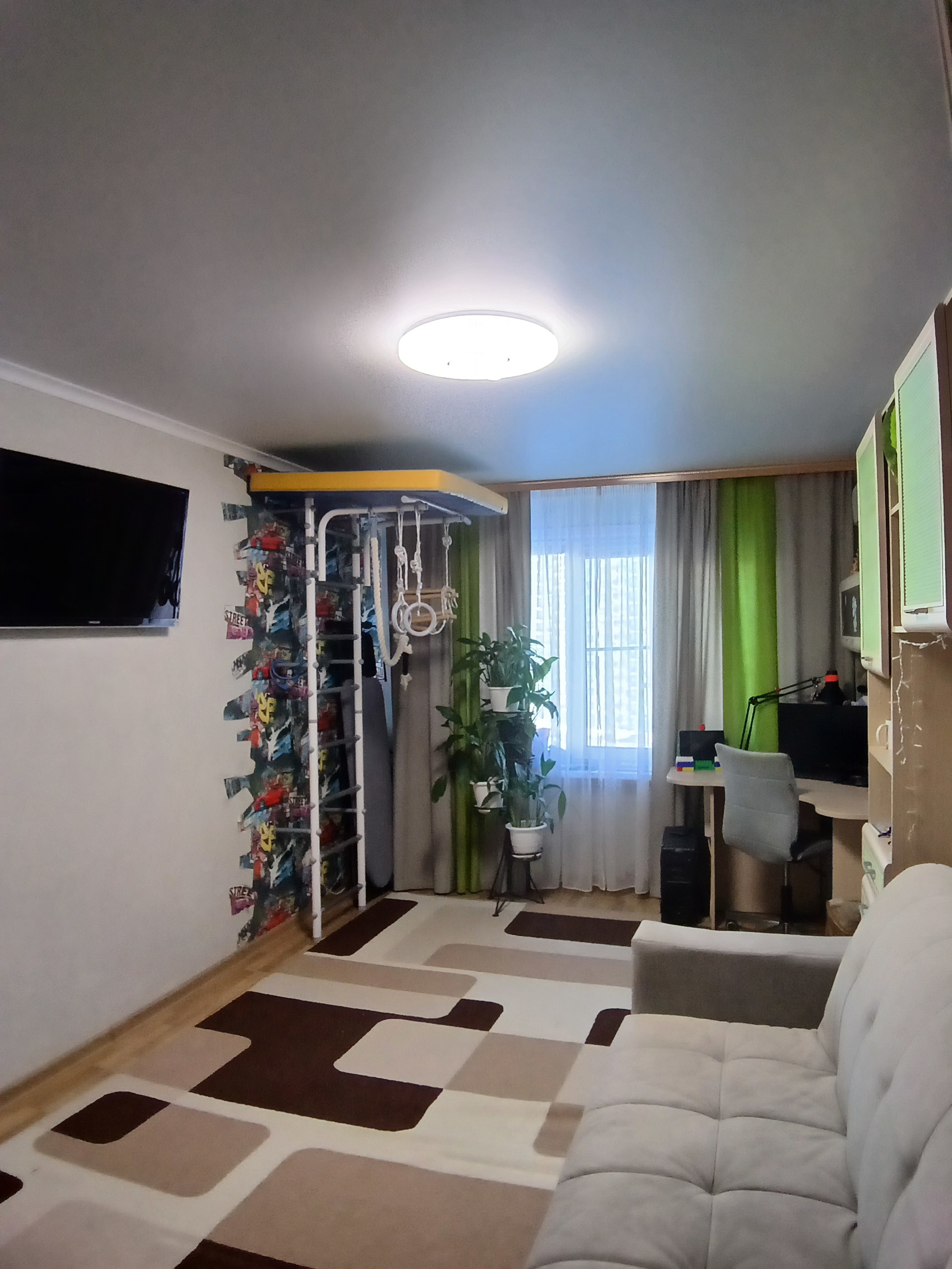 Большая, хорошая, светлая, просторная планировка, имеет форму распашонки. Два окна выходят на восток и одно окно на запад.